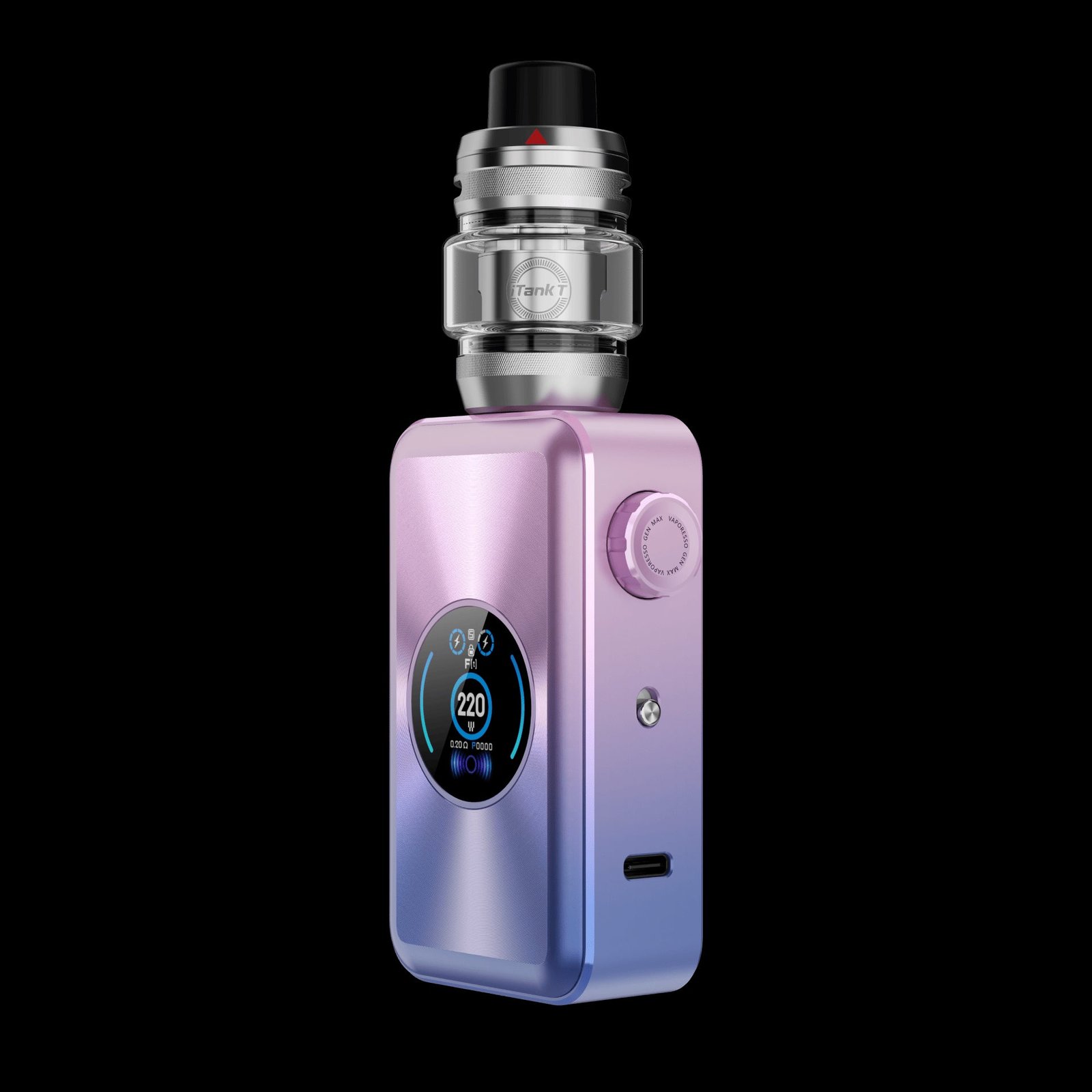Vaporesso Gen Max Kit funciona con dos baterías 18650 (no incluidas) y ofrece un impresionante rango de potencia de 5 a 220 W. Incluye Vaporesso iTank T con su sistema de flujo de aire superior, disfrute de una experiencia de vapeo optimizada y sin fugas. El kit Gen Max también cuenta con una pantalla TFT de 0,96 pulgadas para una visualización clara. El iTank T se ha mejorado con un flujo de aire superior y un llenado superior, lo que simplifica las recargas y mejora la resistencia a las fugas. La bobina GTi ahora cuenta con tecnología COREX 2.0, que ofrece un mejor sabor y producción de vapor.